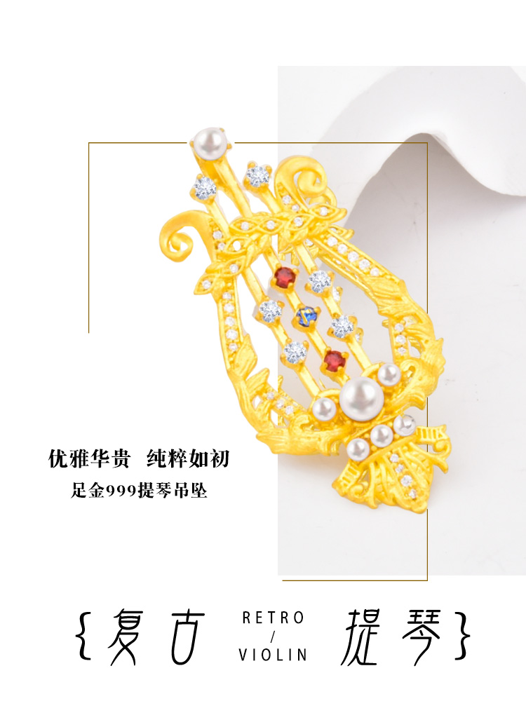 足金竖琴吊坠