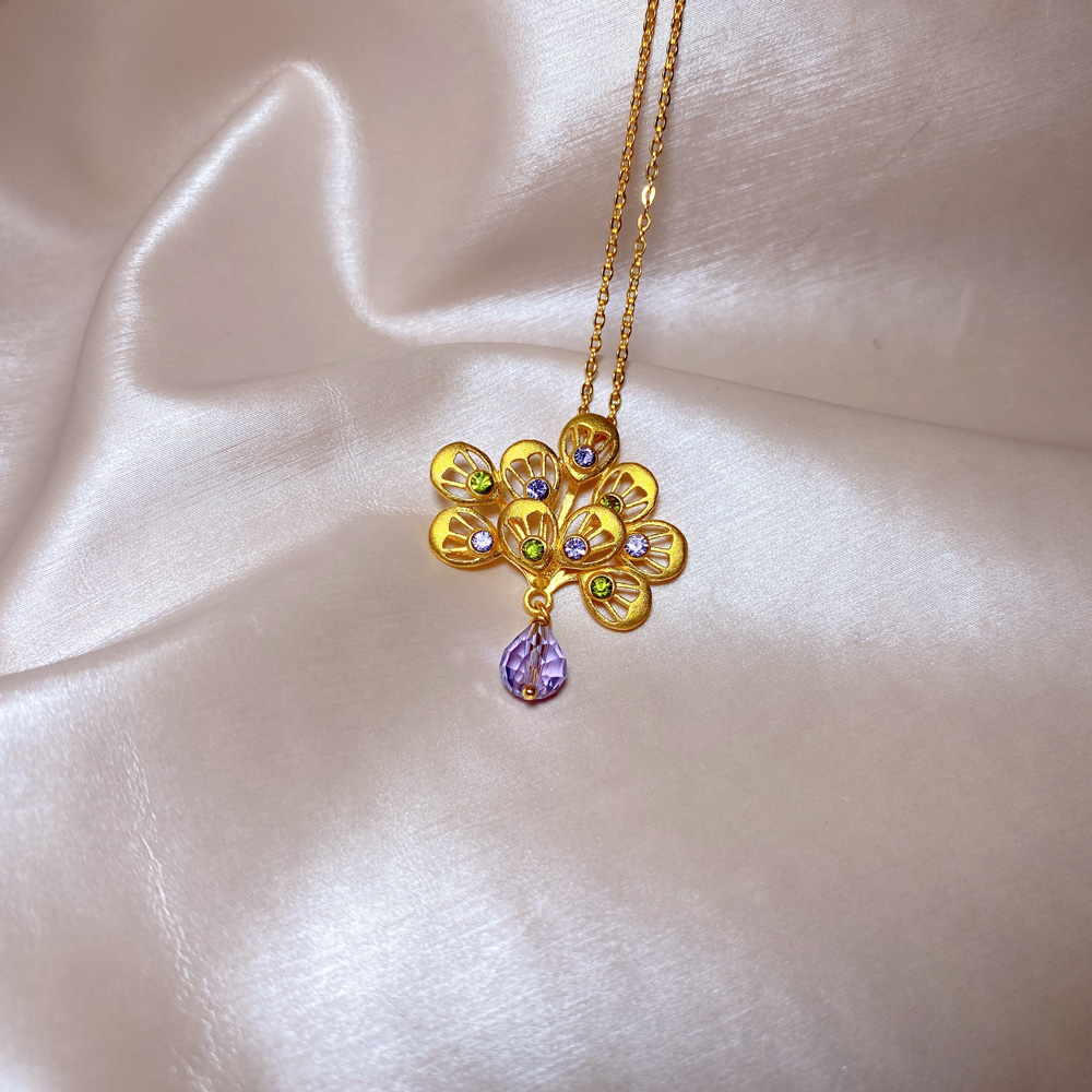 足金孔雀吊坠