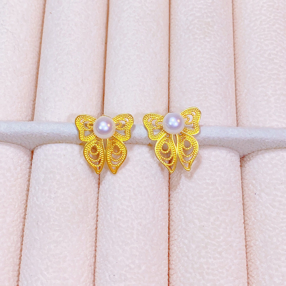 足金珍珠蝴蝶耳钉