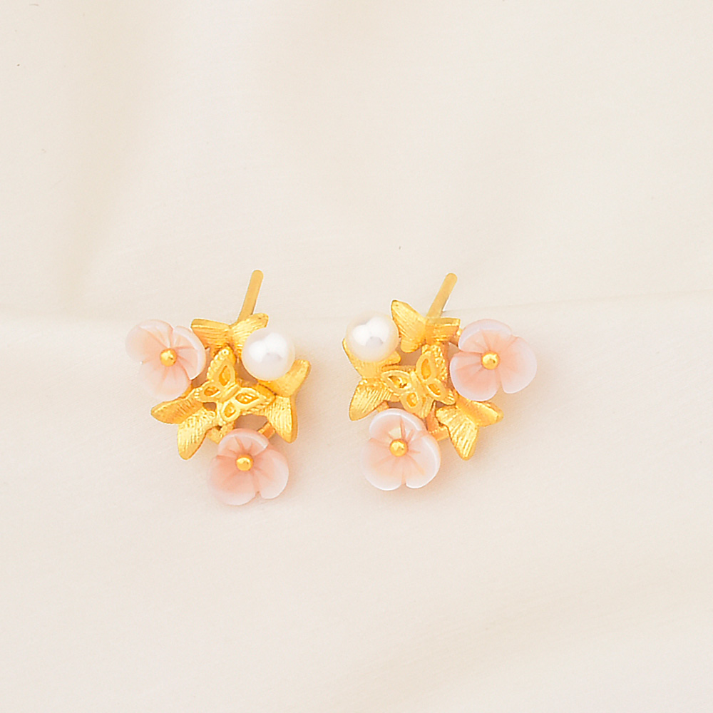 足金花蝶语耳钉