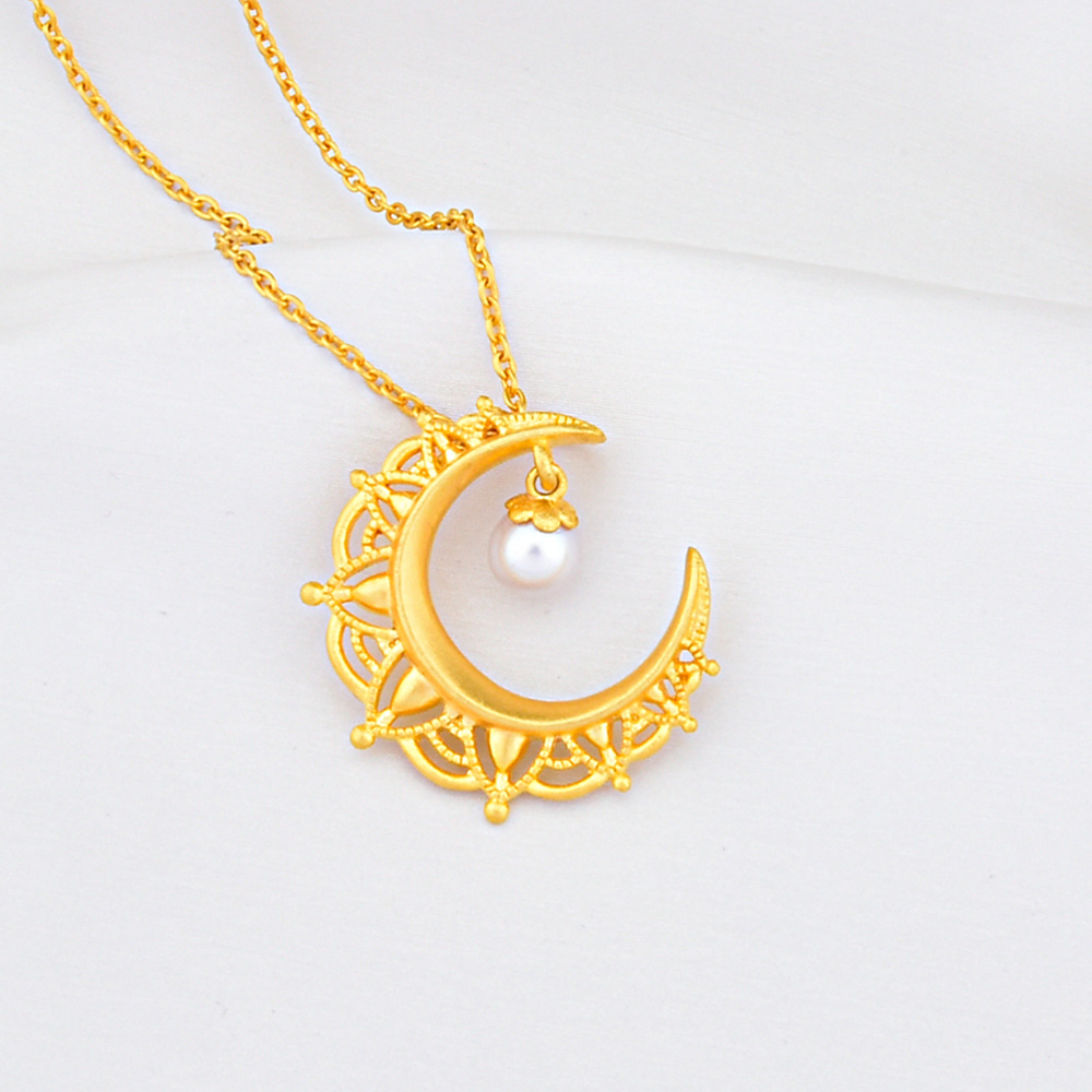 足金珍珠月亮吊坠大号