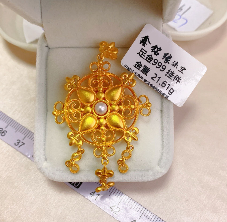 足金珍珠大圆盘吊坠
