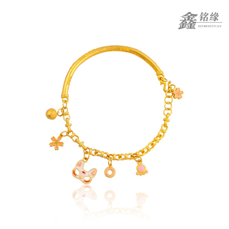 足金狐狸半镯珐琅滴流手链
