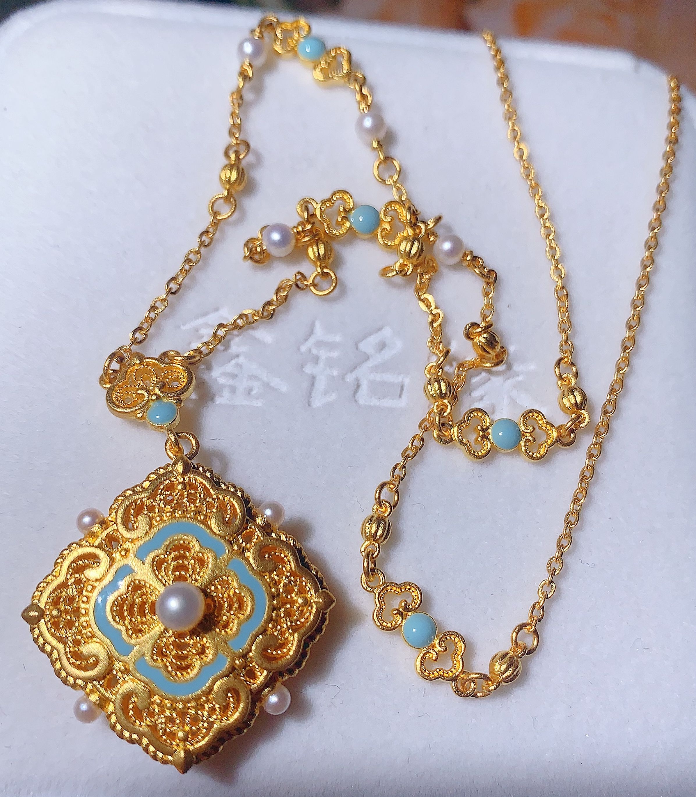 足金荷塘月色螺钿项链