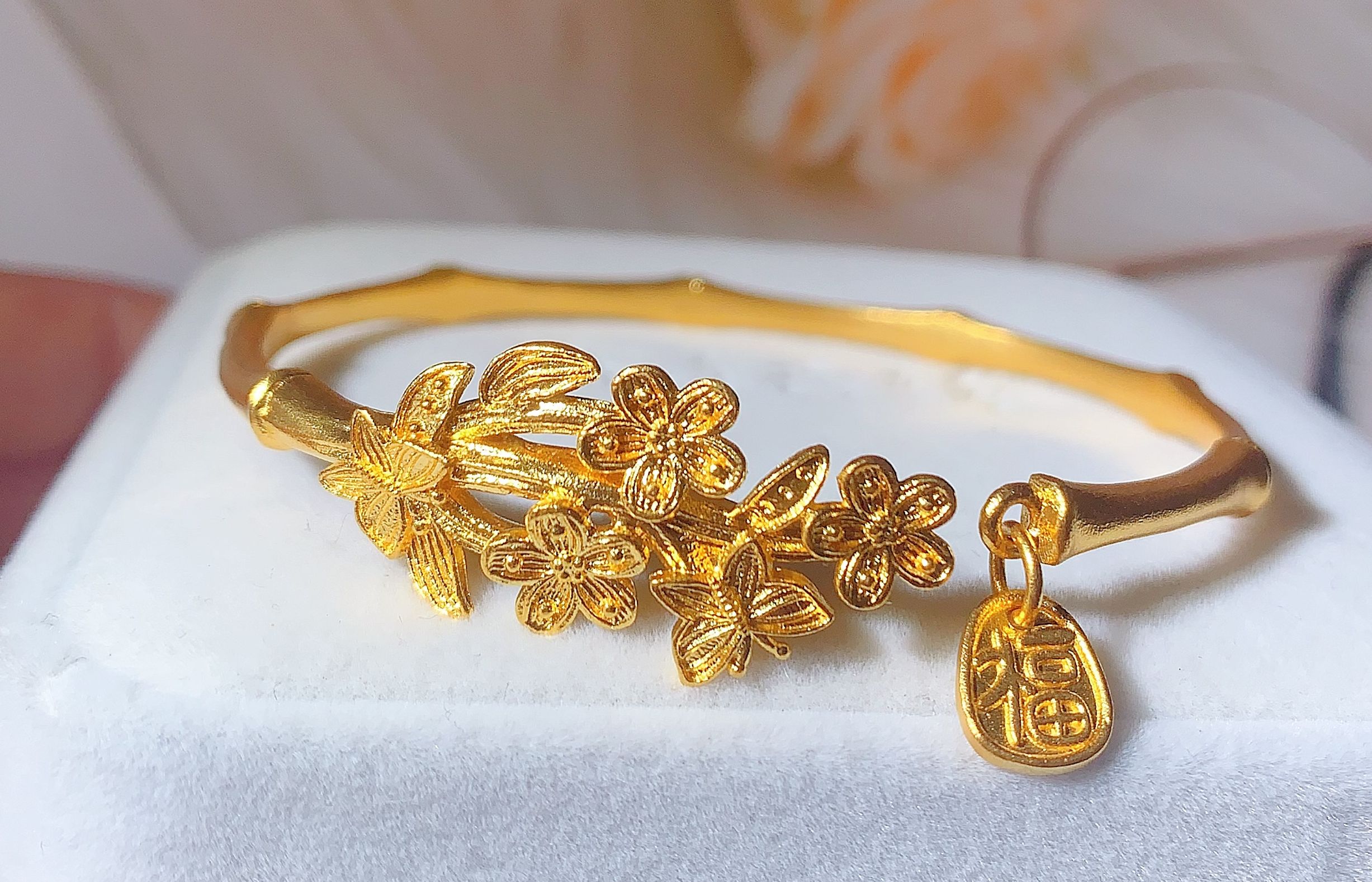 足金蝴蝶花丛竹节手镯