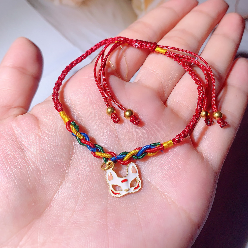 足金狐狸面具编绳手链