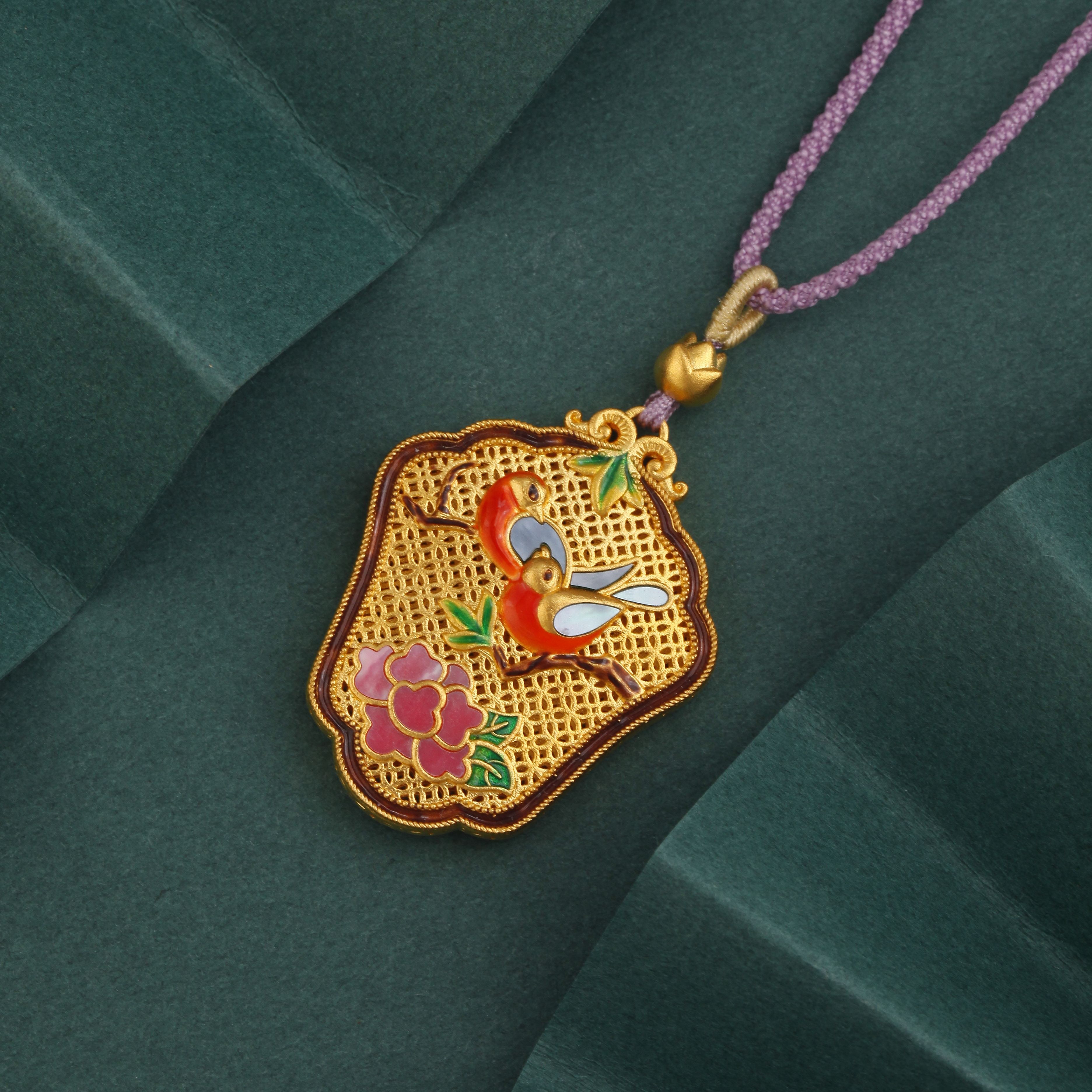 足金点钻鸟语花香项链