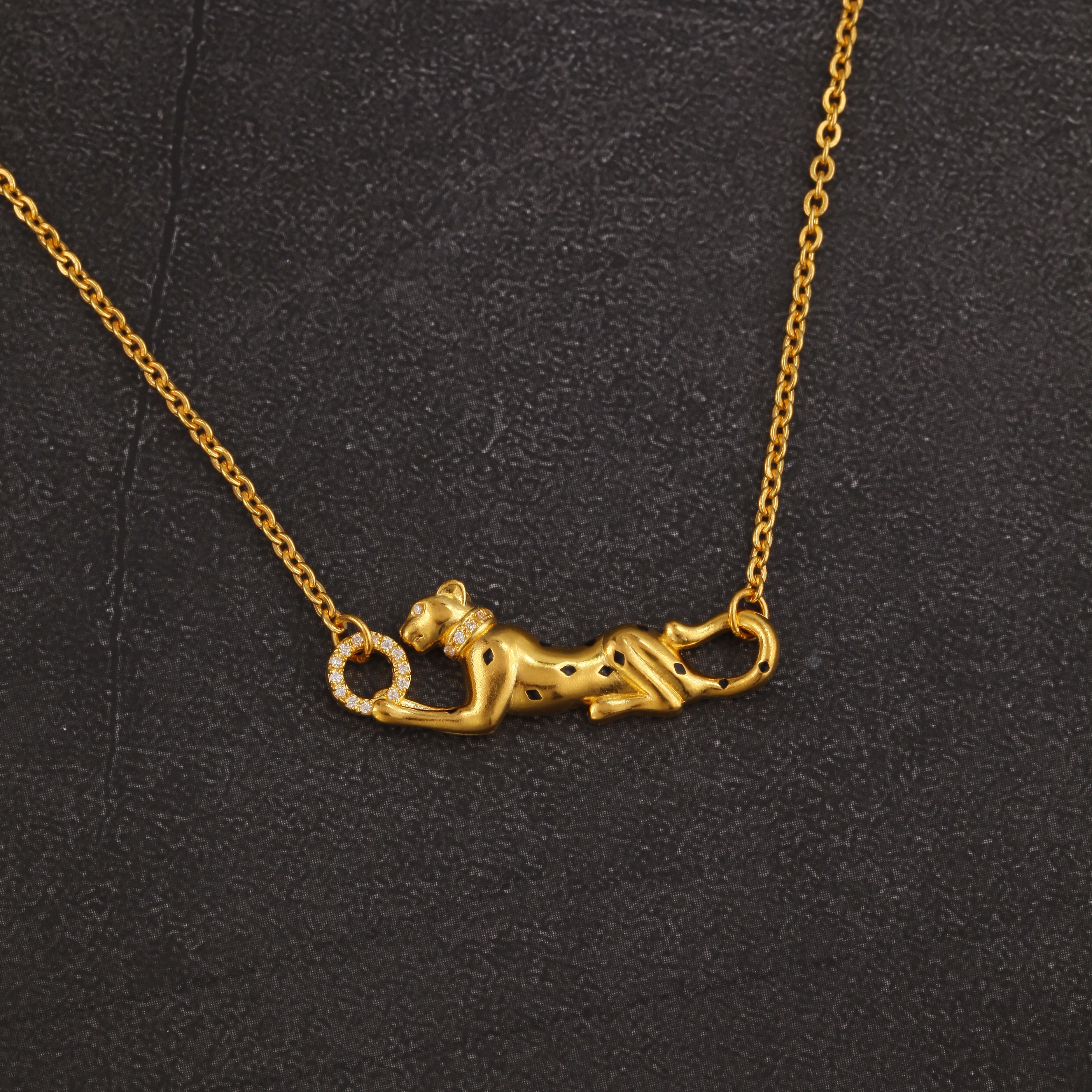 足金点钻豹子项链